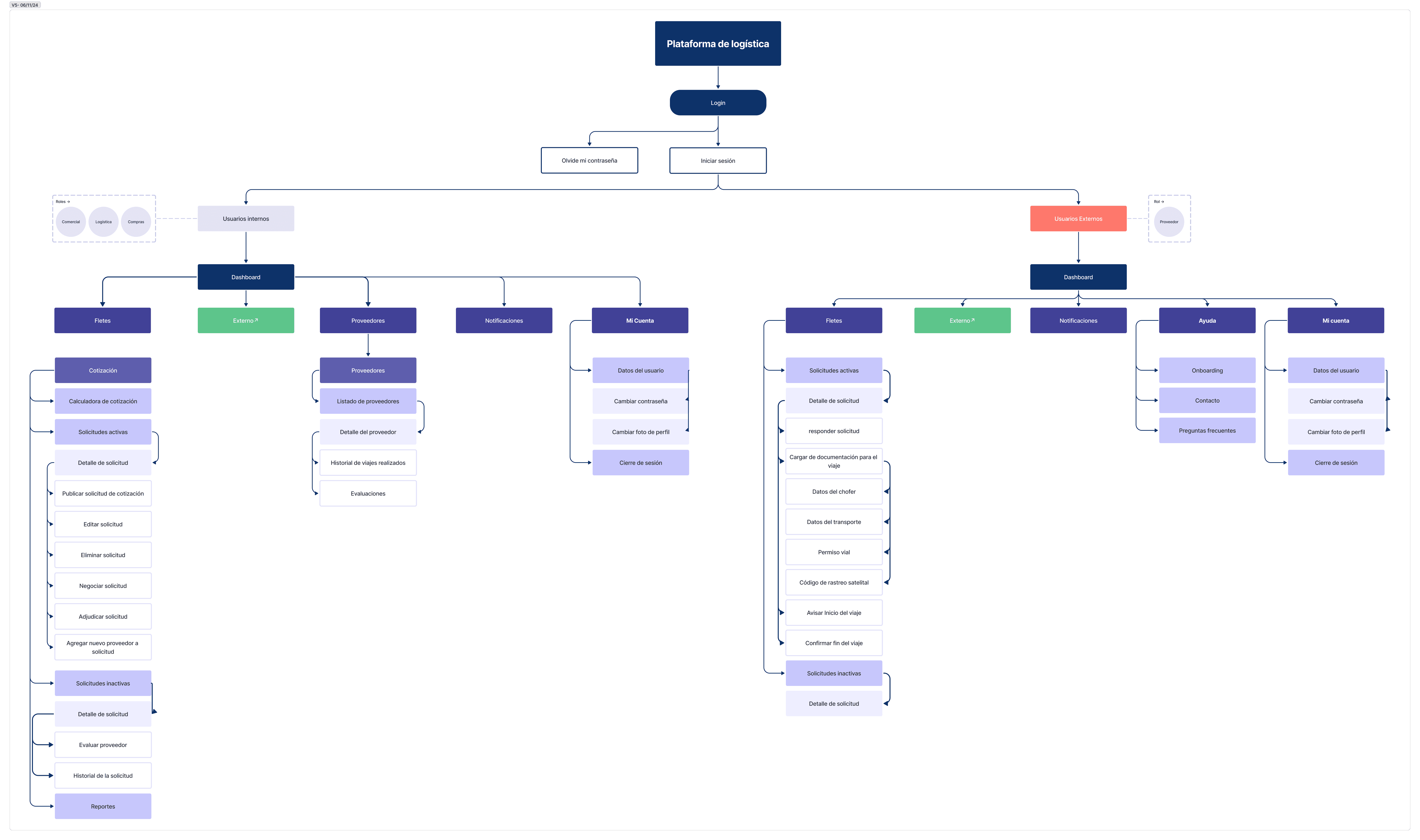 Estructuramos la plataforma considerando los distintos roles y etapas del proceso logístico y la validamos la de información mediante un card sorting abierto con 6 usuarios internos involucrados en el proceso logístico.