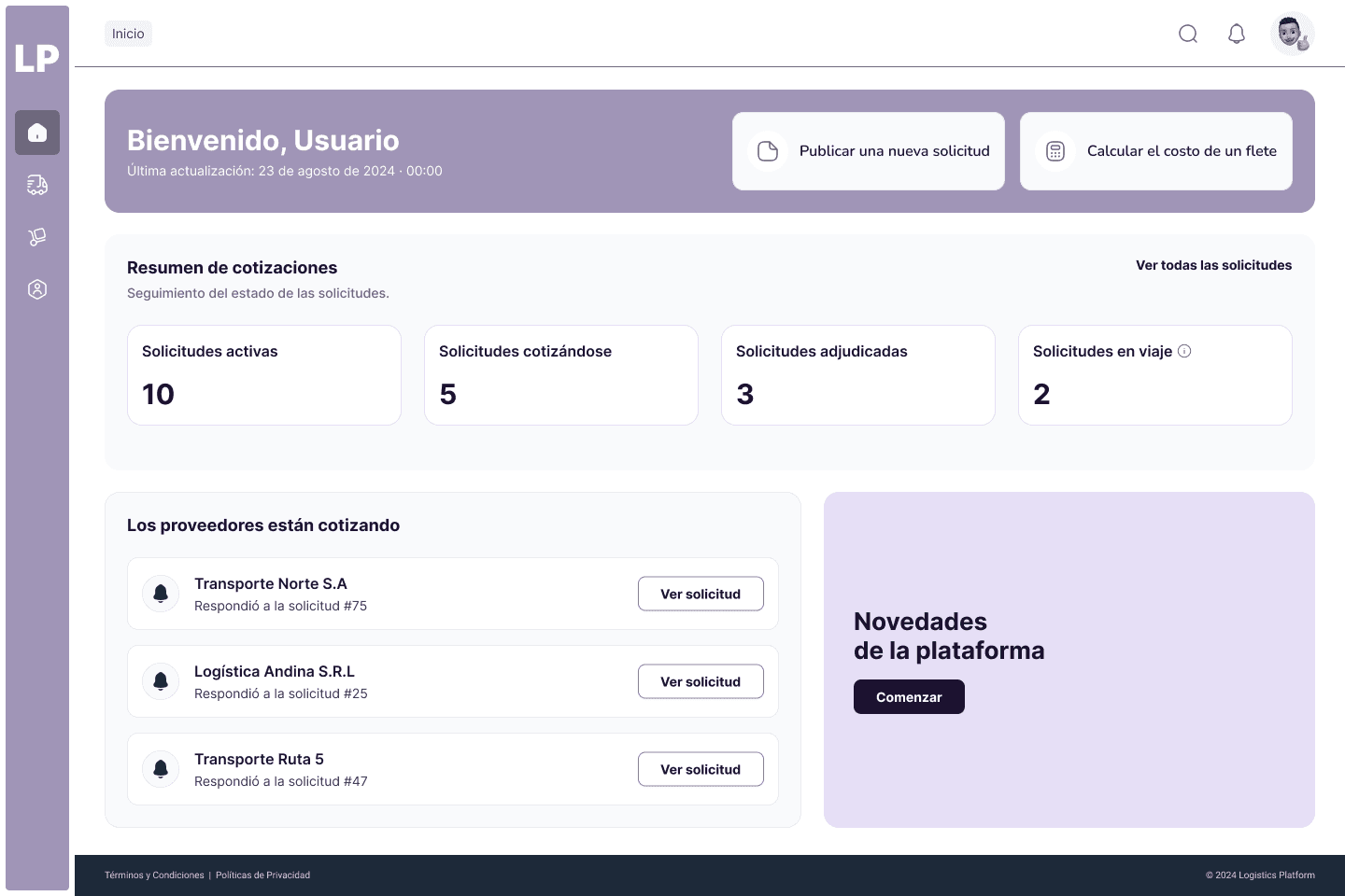 Automatizar la gestión de cotizaciones de fletes de larga distancia y centralizar el seguimiento del proceso logístico en una sola plataforma.