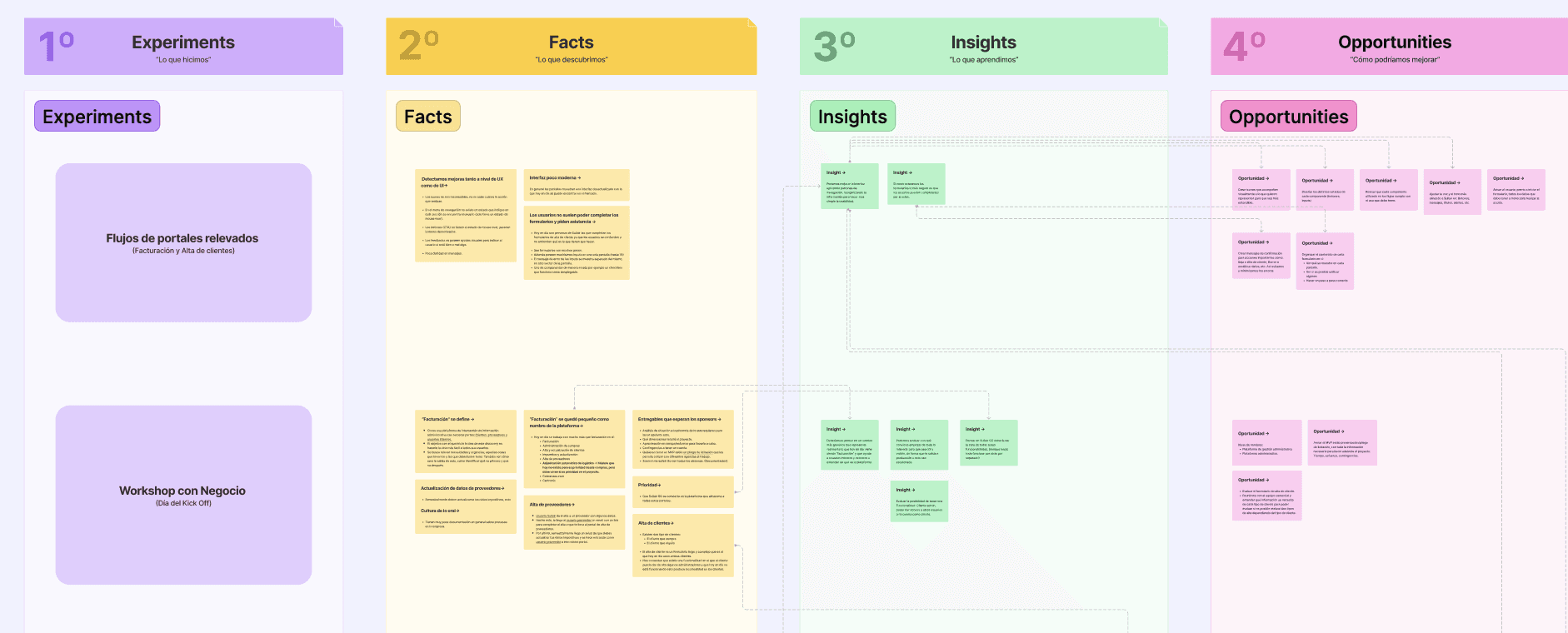 Organización de los hallazgos para identificar patrones, fricciones y oportunidades de mejora.